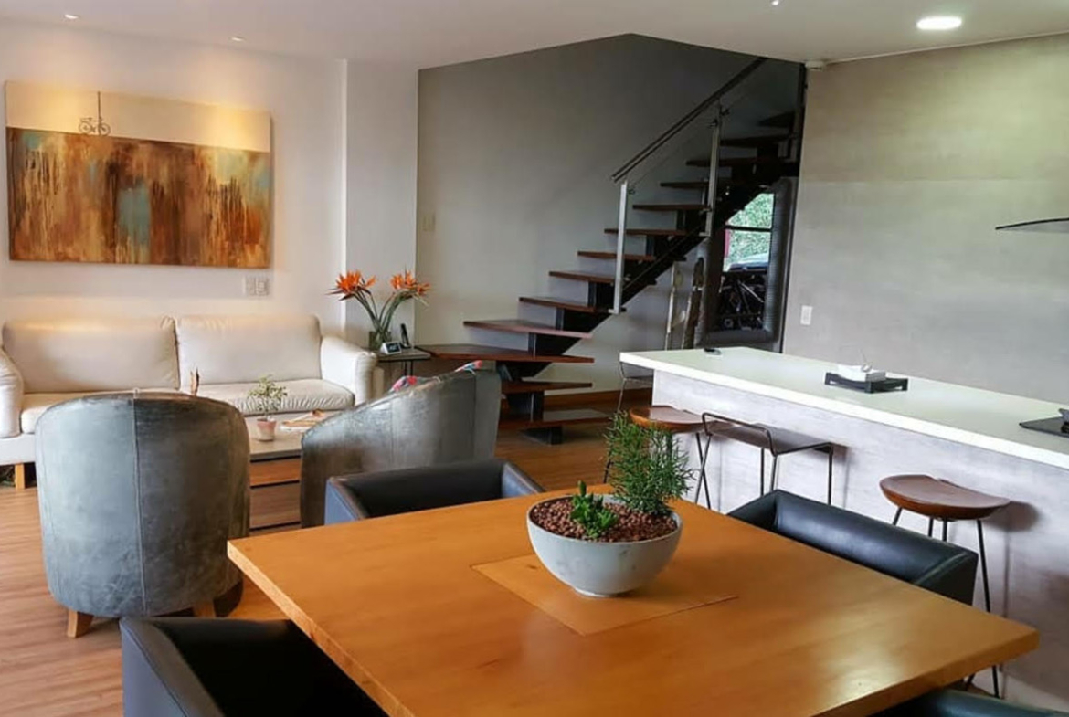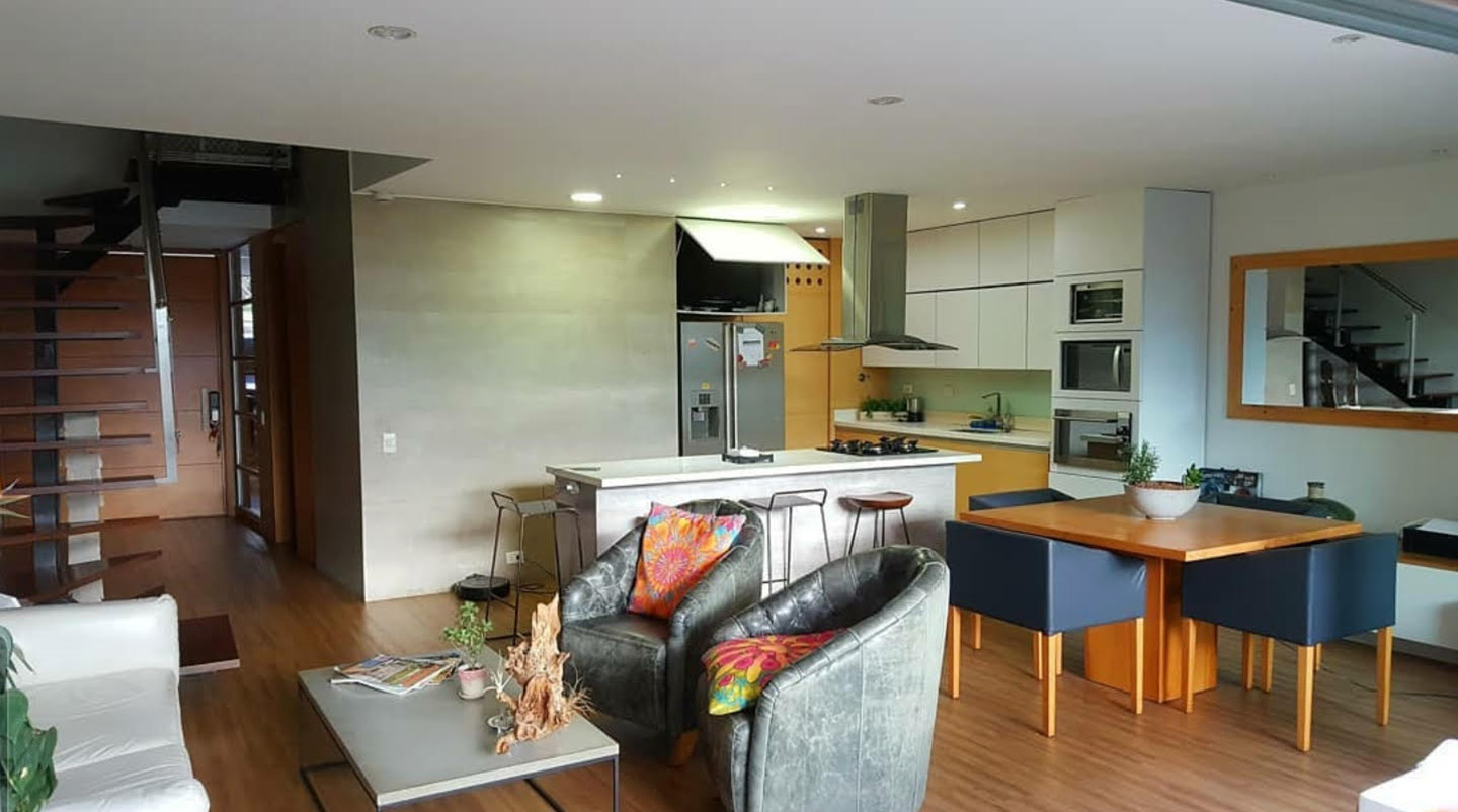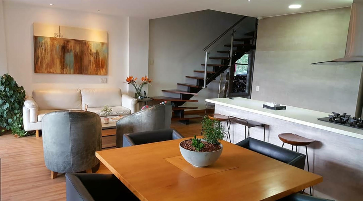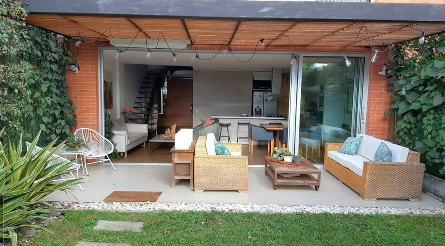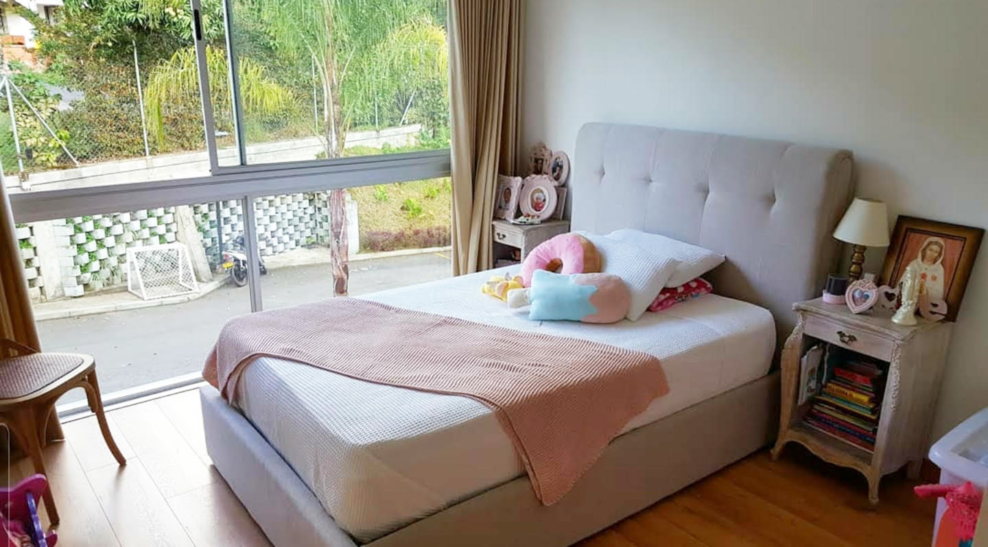 Excelente Casa de 2 niveles ubicada en la parte alta de Envigado cerca al Colegio Montessori. 174.6 metros construidos + 56.94 metros de terraza con jardín, 3 alcobas ( todas con baño y vestier ) + servicio, estudio y parqueadero 2ble paralelo